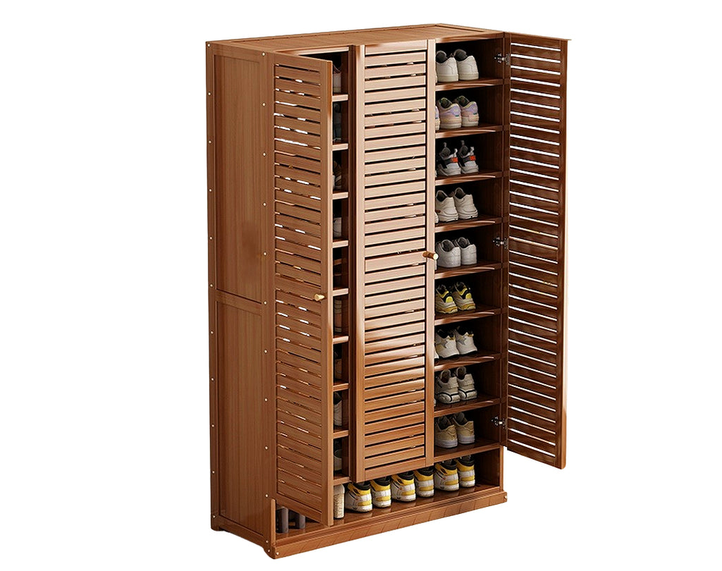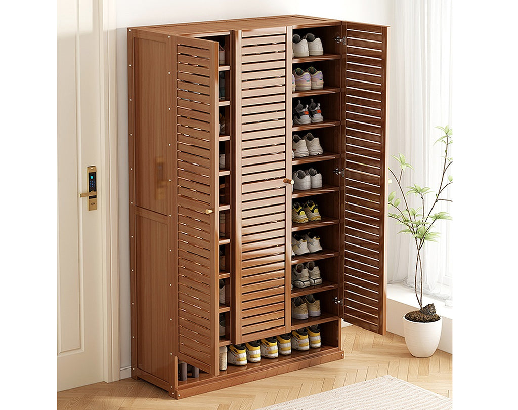 ארון נעליים 3 דלתות ו 18 מדפים סגורים ומדף פתוח אחד.