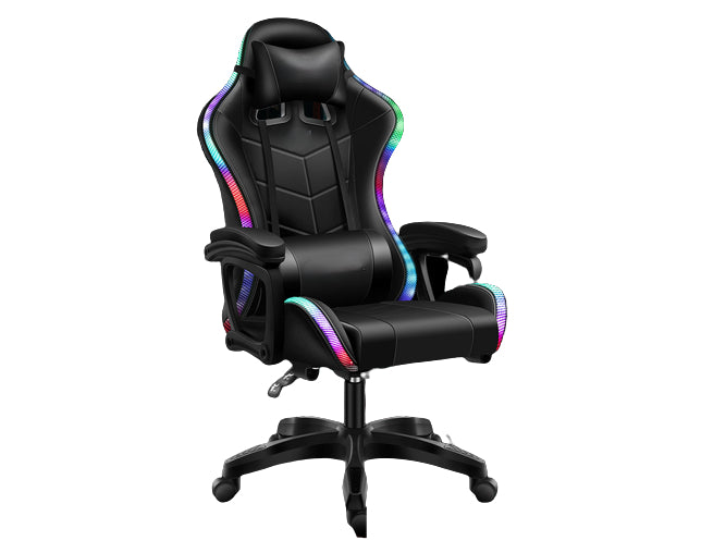 כיסא גיימינג מקצועי המשלב תאורת LED מחליפה צבעים, מתחבר באמצעות כבל USB ונשלט באמצעות שלט לקביעת צבע תאורת הLED.