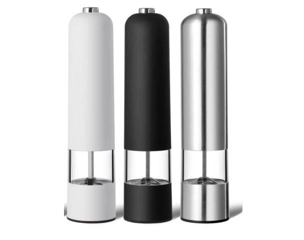 מטחנת מלח/פלפל חשמלית בעלת מנגנון טחינה קרמימופעלת ע"י סוללות (לא כלולות)צבע לבן או שחור או נירוסטה (יישלח לפי מלאי ספק)