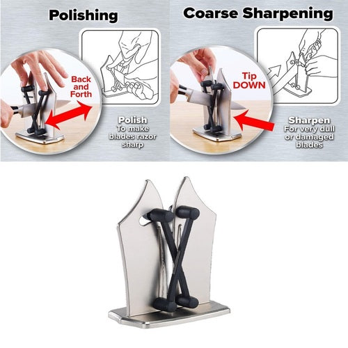 משחיז סכינים מקצועי עם מנגנון יניקת השחזה ייחודי גמיש המאפשר השחזה מושלמת. מתאים להשחזת סכיני שף, סכיני מטבח, מספריים ואפילו סכיני צייד. בעל בסיס יציב ועמיד במיוחד.
