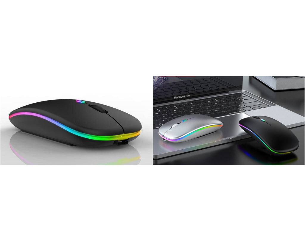 עכבר אלחוטי בלוטוס בגימור חלק ויוקרתי משלב תאורת LED עדינה.